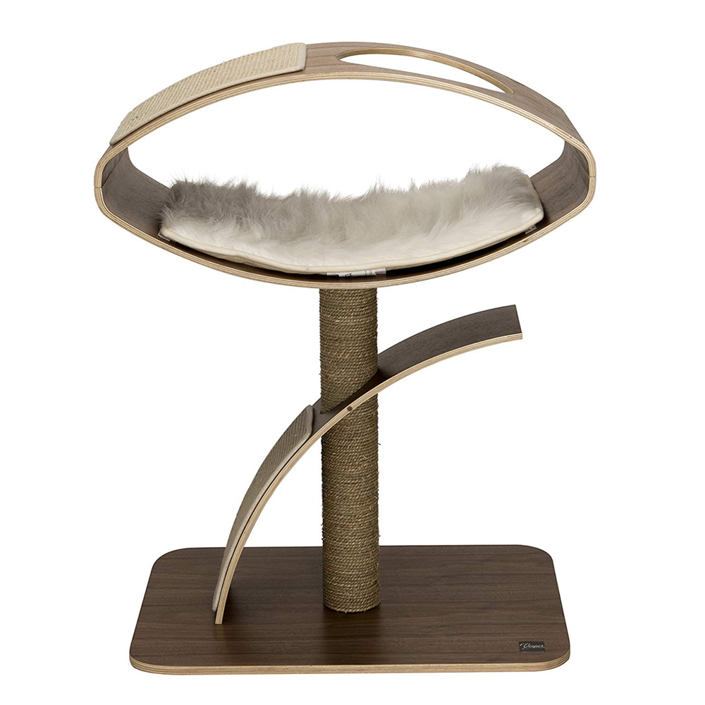 Futuristisch elegant. So beschreibt man am besten die ungewöhnliche Form von V-High Lounge. Diesesmoderne Katzenmöbel aus Pappelholz ist einzigartiger Aussichtspunkt und Kuyschelhöhlein einem.
