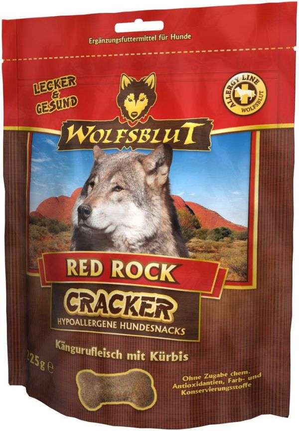 RED ROCK CRACKER sind komplett getreidefreie Hundekekse mit einem hohen Fleischanteil. Sie bauen auf der Wolfsblut-Futtersorte RED ROCK auf und enthalten kein Zucker, keine Farb-, Duft-, Füll-, Lock- oder Konservierungsstoffe und auch keine chemischen Antioxidantien.
