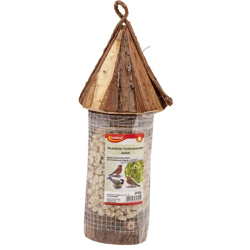 Ergänzungsfutter für Wildvögel in einem heimischen vogelfreundlichen Garten. zookauf Erdnüsse blanchiert schalenlos sind eine optimale Energiequelle für alle frei lebenden Gartenvögel. Achten Sie auf Sauberkeit und Hygiene am Futterplatz und wechseln Sie nach Möglichkeit die Futterstelle von Zeit zu Zeit im engen Umkreis. Am besten ist es, den rustikalen Futterspender in der Nähe von Fluchtmöglichkeiten wie Bäumen oder Sträuchern zu platzieren.